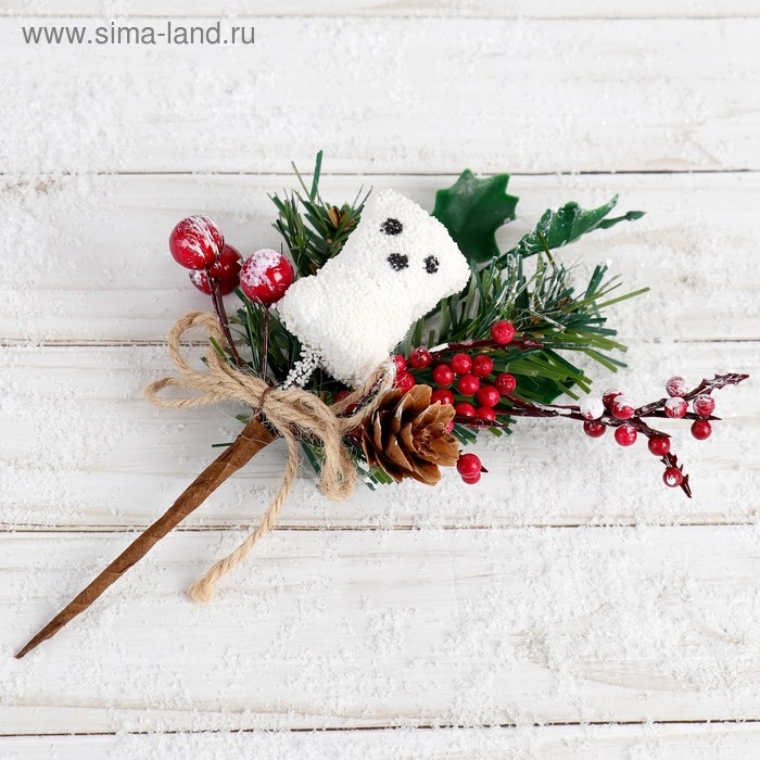 Декор "Зимнее очарование" мишка, ягоды и шишка 21 см