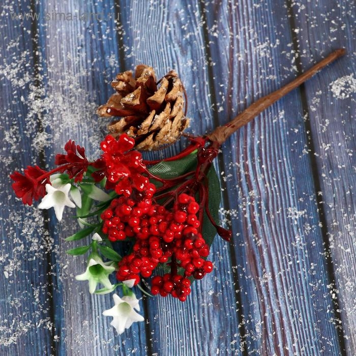 Декор "Зимнее очарование" шишка ягоды цветочки, 15 см