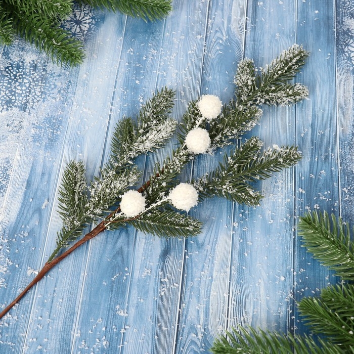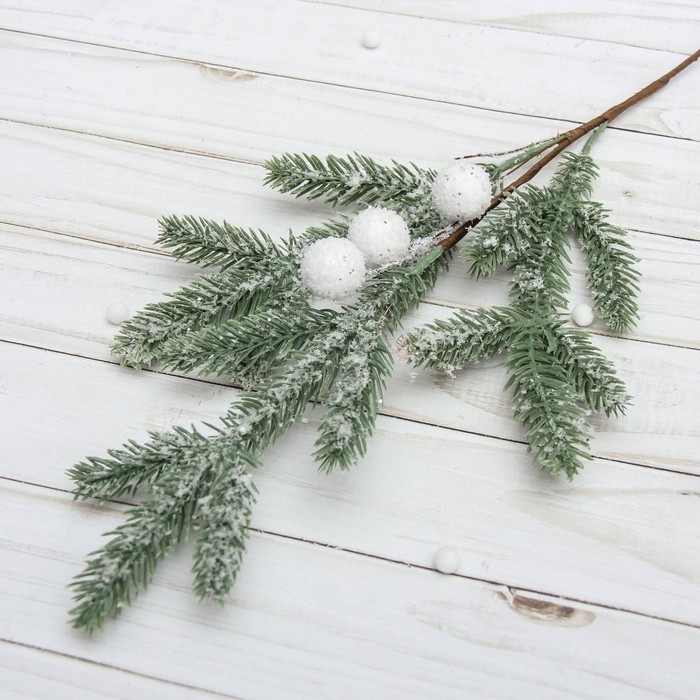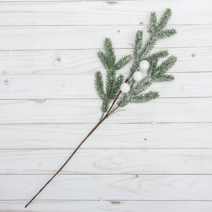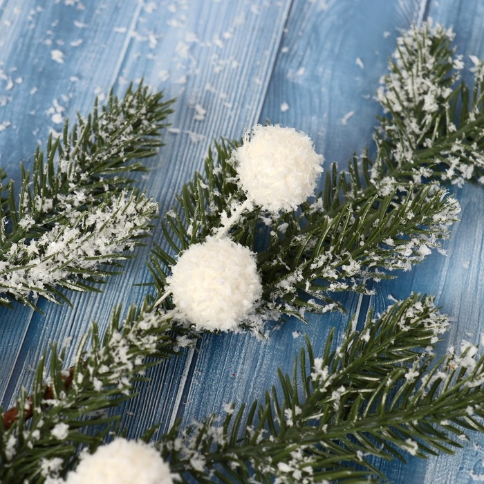 Декор "Зимние мечты" веточка с белыми шариками, 50 см