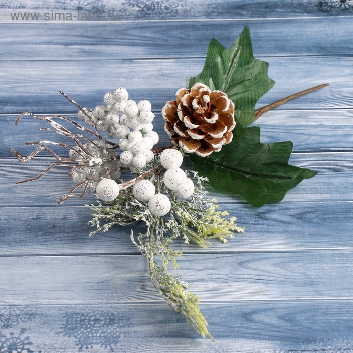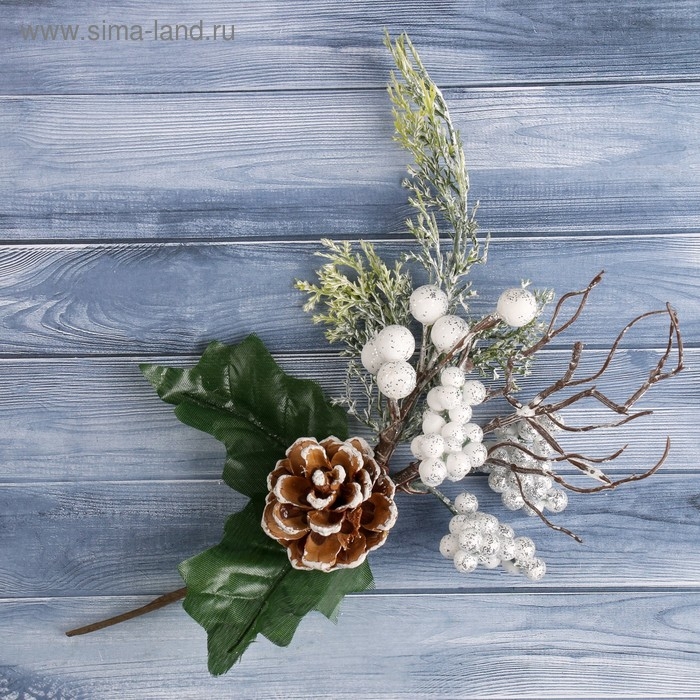 Декор "Зимняя магия" шишка белые ягоды, 23 см