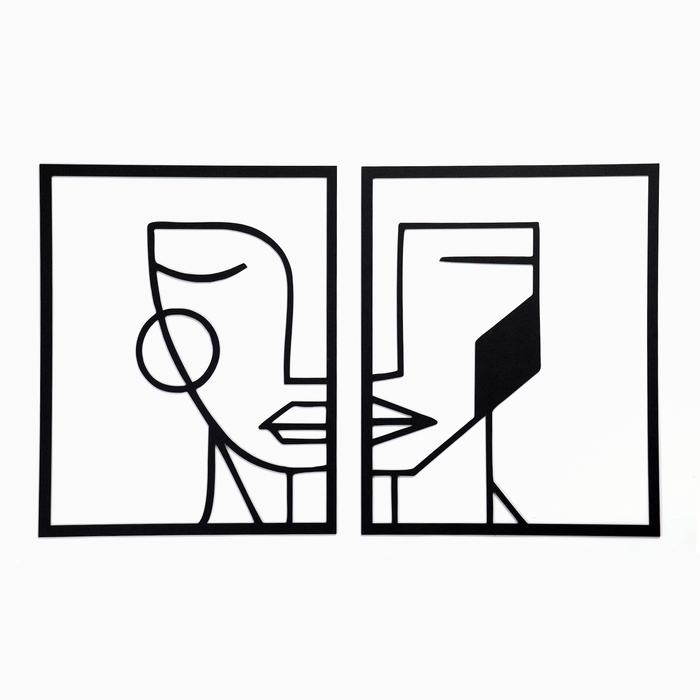 Декорация настенная для интерьера, панно на стену из дерева "Девушка", 2 модуля 59 х 47 см