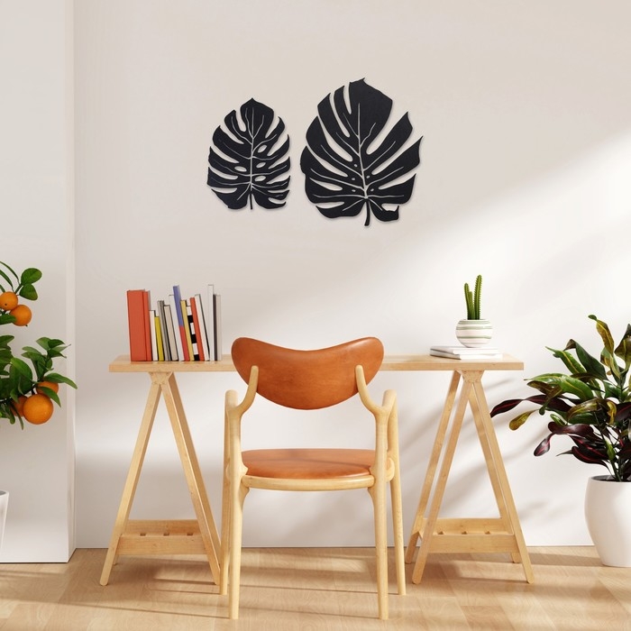 Декорация настенная для интерьера, панно на стену из дерева "Монстера", 2 модуля