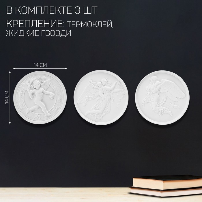 Декорация настенная, гипсовое панно "Набор тарелок", 3 шт