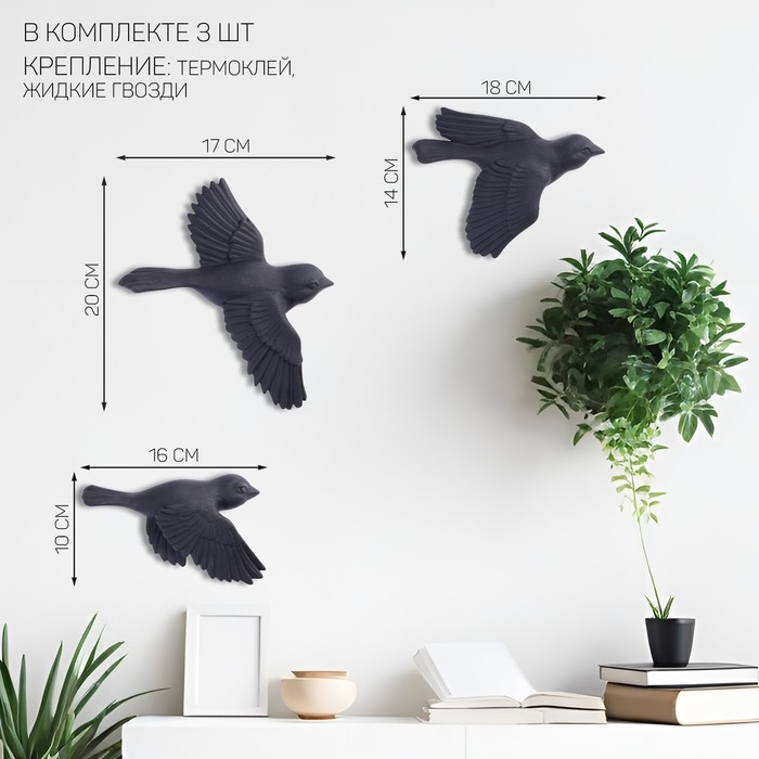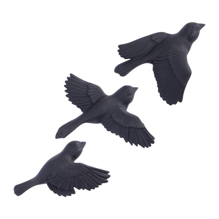 Декорация настенная, гипсовое панно "Птицы" 3 шт, черные, матовые