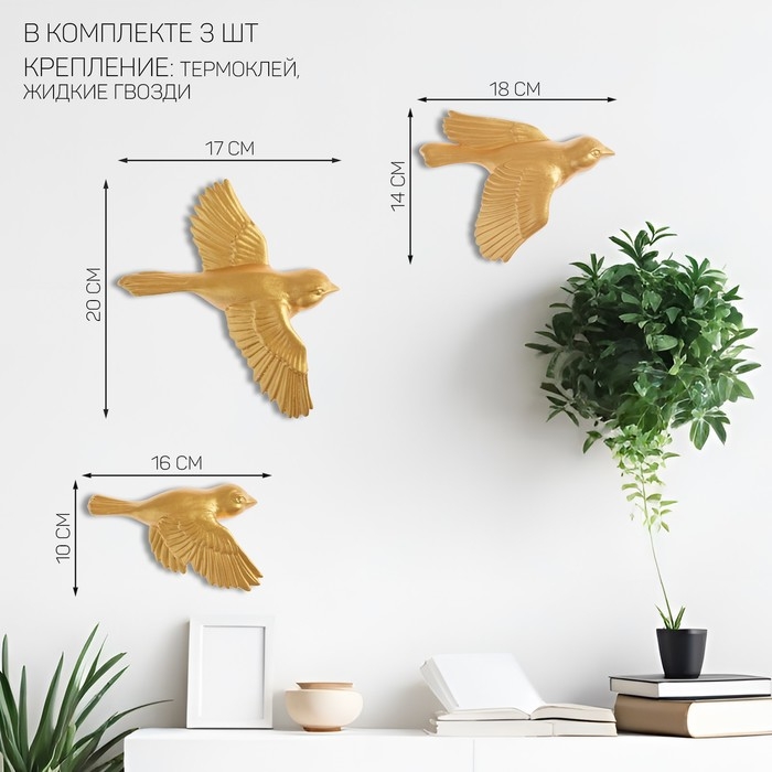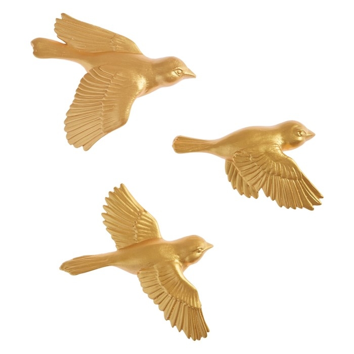 Декорация настенная, гипсовое панно "Птицы" 3 шт, золотые