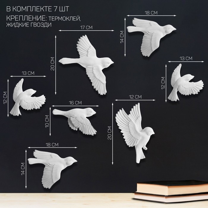 Декорация настенная, гипсовое панно "Птицы" 7 шт, белые