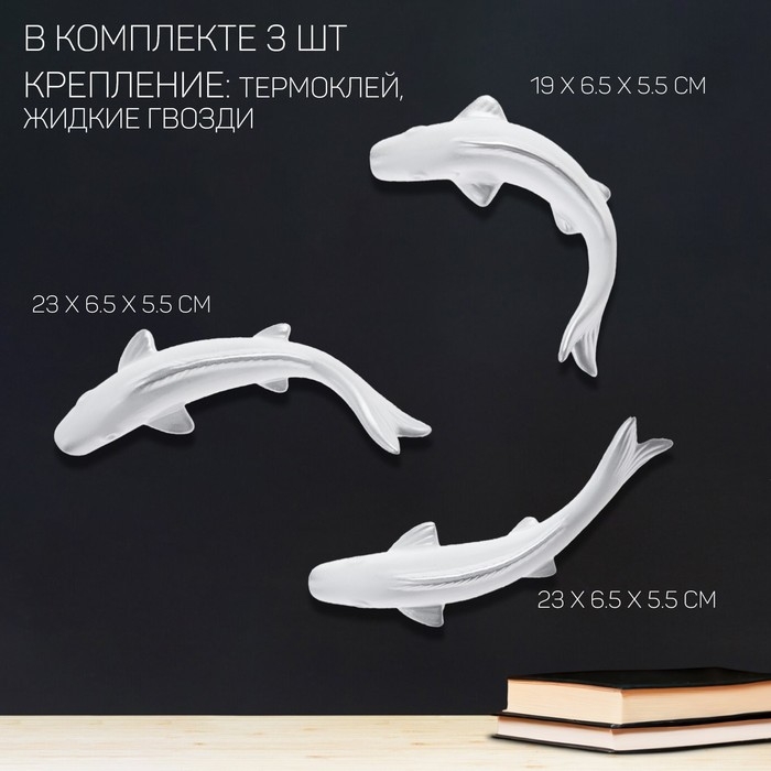 Декорация настенная в форме рыб - это предмет, который наполнит каждый уголок вашего жилища теплом и доставит радость как женщинам, так и мужчинам. Гипсовая настенная декорация окружит вас животворящей энергией, создавая интересный акцент для гостиной, кухни или спальни. Дизайн вашей комнаты оживет и приобретет новые оттенки благодаря этому отличному украшению для стен. Каждое изделие сделано с любовью для уюта в Вашем доме. Как сделать любой интерьер уютнее? Украсьте спальню, гостиную, ванную комнату, прихожую или детскую комнату. Наклейте для уюта рыбок на стену.