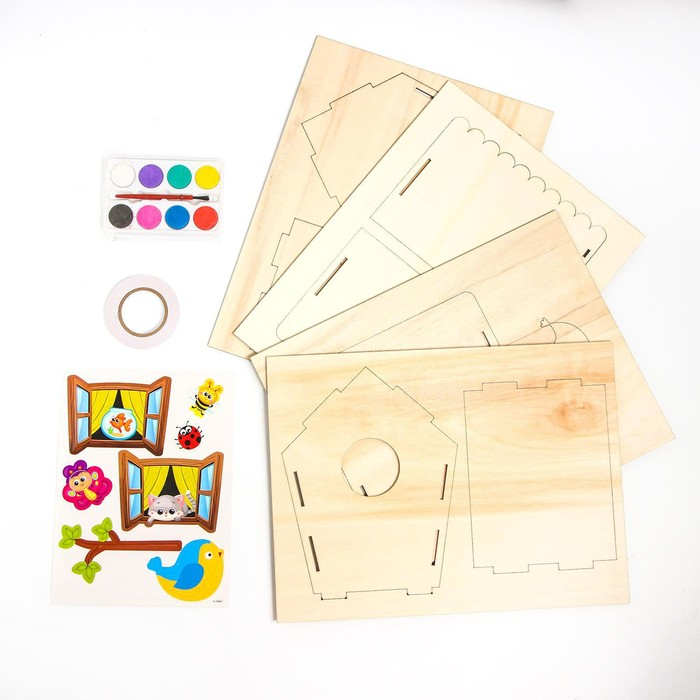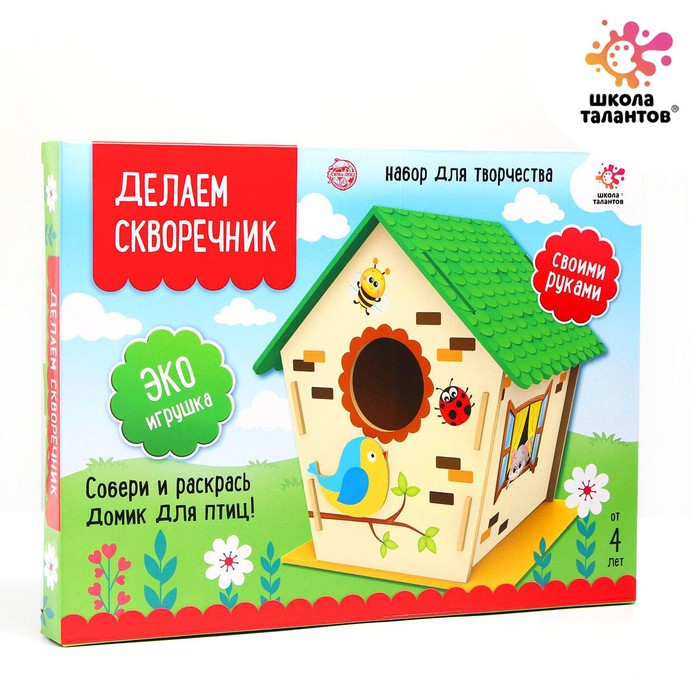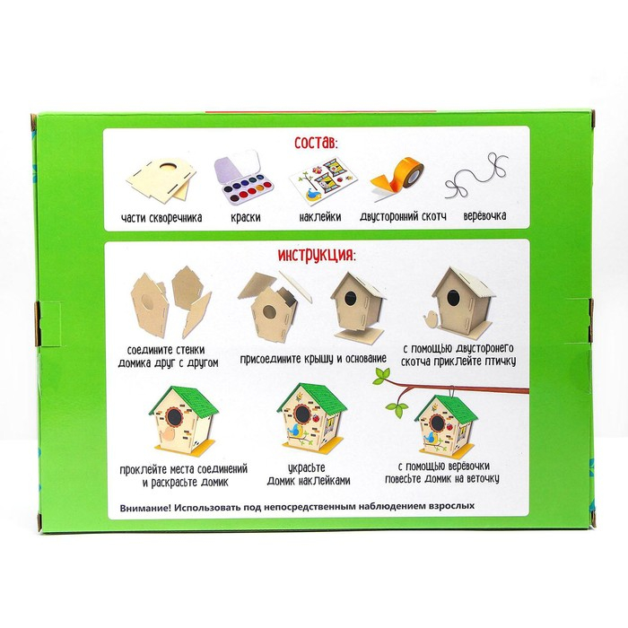 С набором для творчества «Делаем скворечник» у вас получится настоящая деревянная кормушка для птиц.