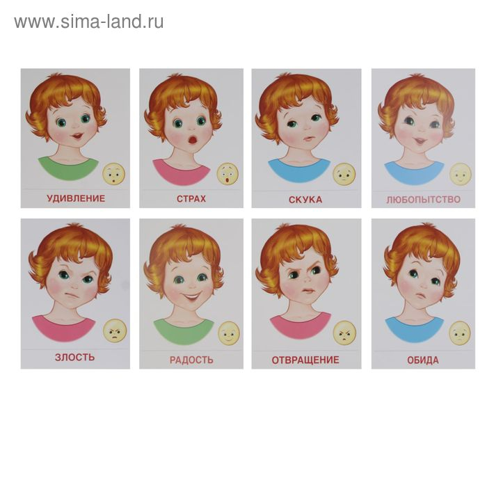 Демонстрационные картинки "Чувства и эмоции" 16 картинок с текстом, 173х220мм