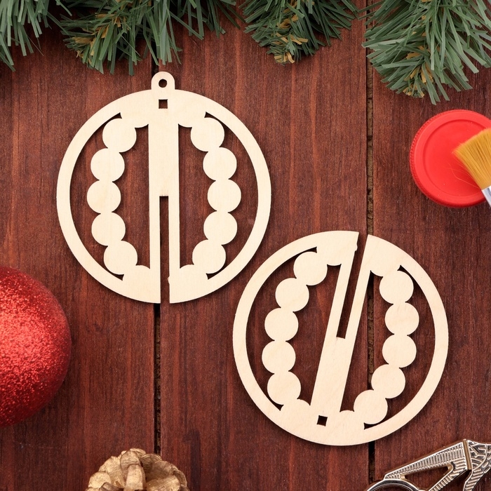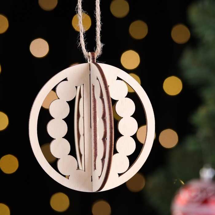 Деревянная игрушка на ёлку "Бусы", шар, диаметр 8 см