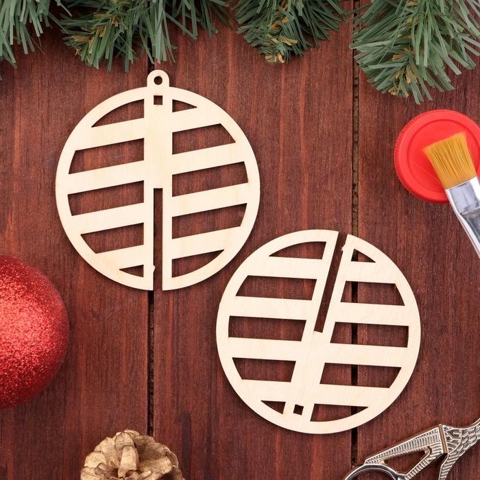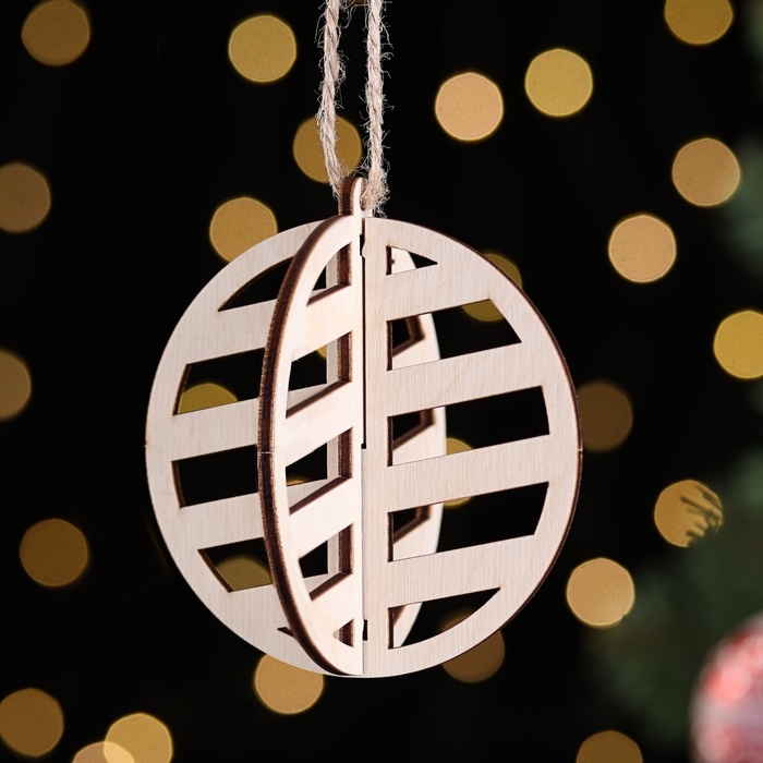Деревянная игрушка на ёлку "Диагонали", шар, диаметр 8 см