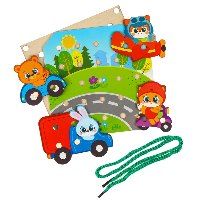 Деревянная игрушка-шнуровка «Транспорт», 15×15 см