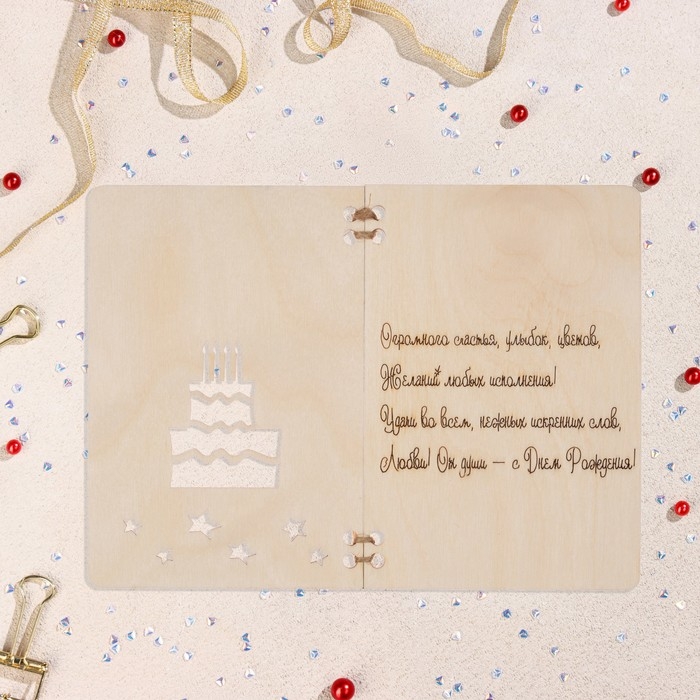 Деревянная открытка "С Днем Рождения!" торт