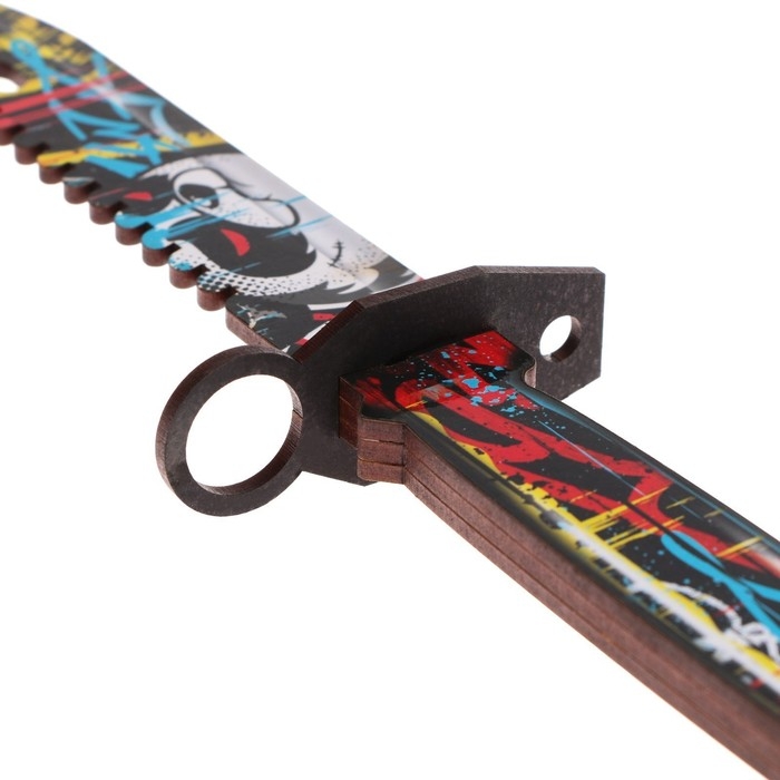 Нож-штык из дерева не является холодным оружием, он изготовлен из фанеры высокого качества. Преимущество деревянного ножа в его прочности - он с усиленной ручкой в несколько слоёв. На детскую игрушку нанесен двухсторонний рисунок. Стильный дизайн игрушечного ножа, а также его форма притягивают внимание. О веселой и динамичной игре мальчиков можно не беспокоиться - у них в руках безопасное оружие. Сувенирный нож не имеет острых краёв и не может посадить занозу или нанести вред. Нож игрушка тщательно отшлифован, клинок не заточен! Идеален как дополнение к подарку на 23 февраля, Новый Год или день рождения.