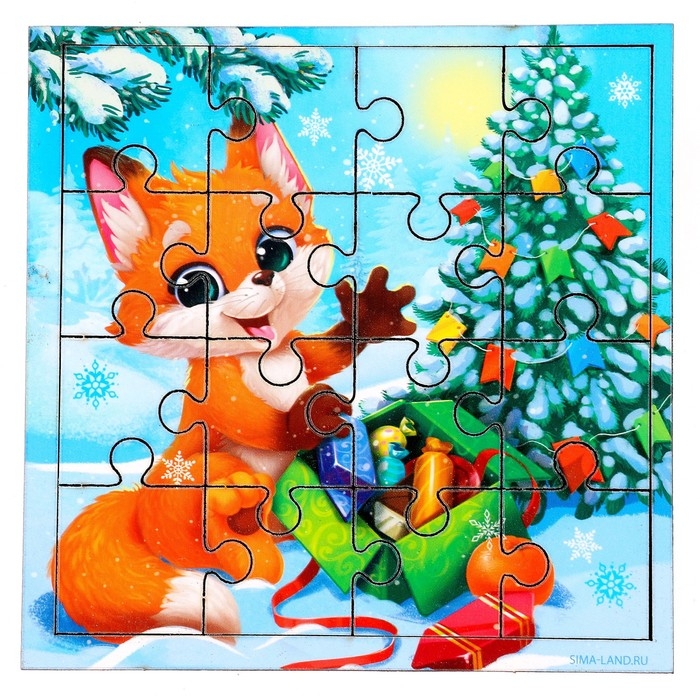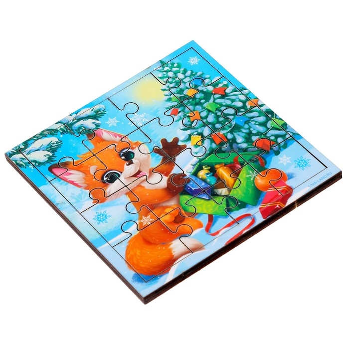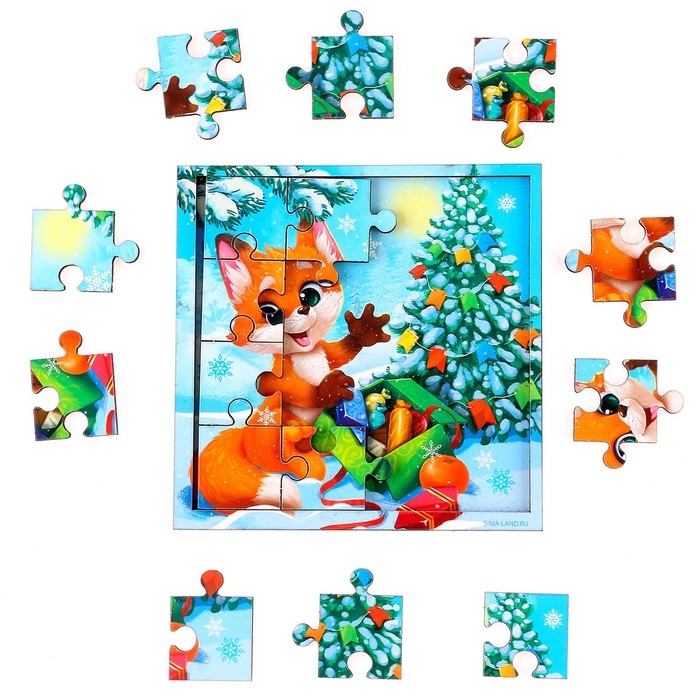 Деревянный пазл «Новый год! Лисёнок с подарками»