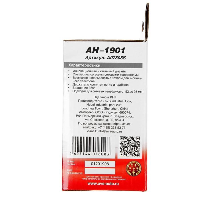 Держатель AVS AH-1901, для смартфонов универсальный, 52-93 мм