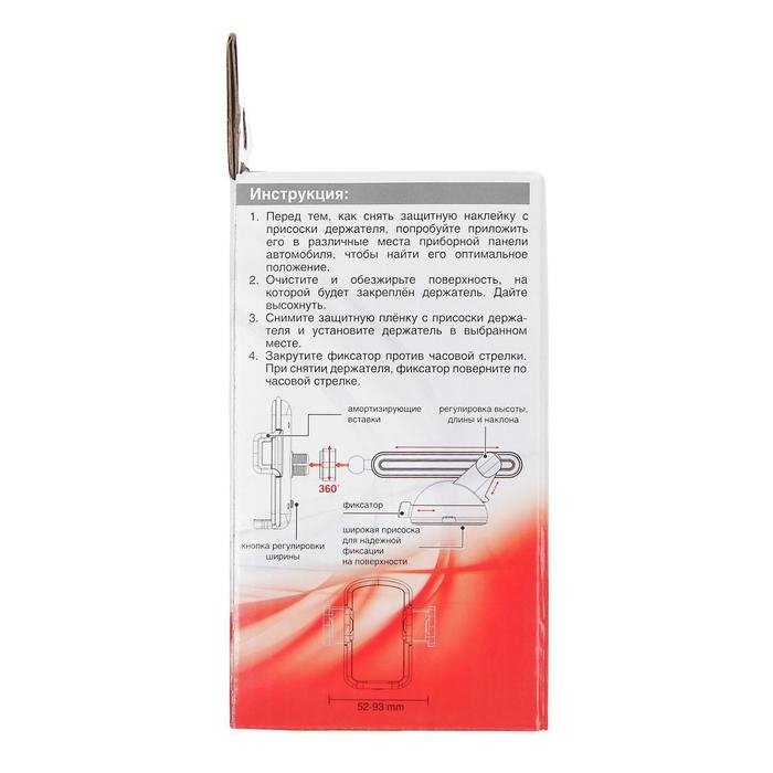 Универсальный держатель - удобный и простой в использовании, способен поворачиваться вокруг своей оси на 360 градусов. Конструкция держателя позволяет максимально удобно настроить положение экрана. Предназначен для устройств шириной до 93 мм.