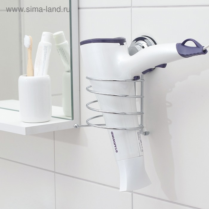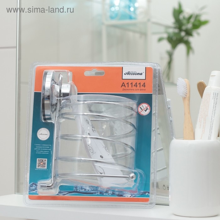 Держатель для фена на вакуумной присоске Accoona, 13×9,5×17 см, цвет хром