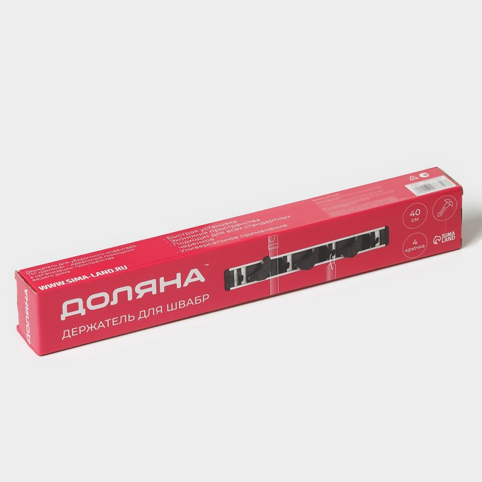 Держатель для швабры и метлы Доляна, с крючками, 3,8×4,8×16 см