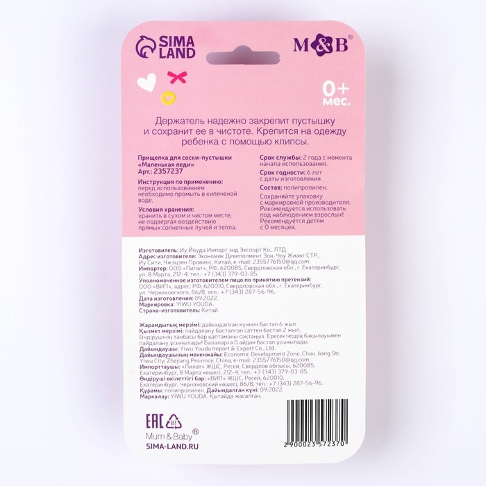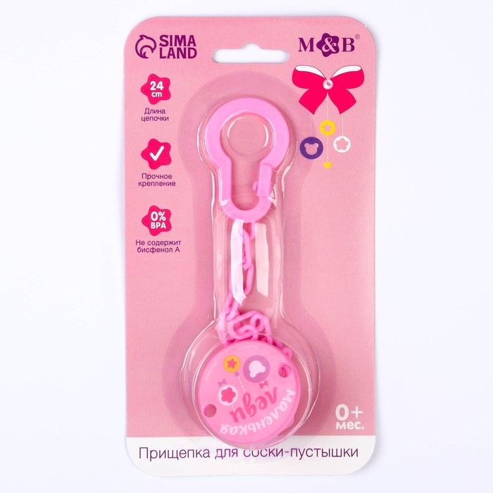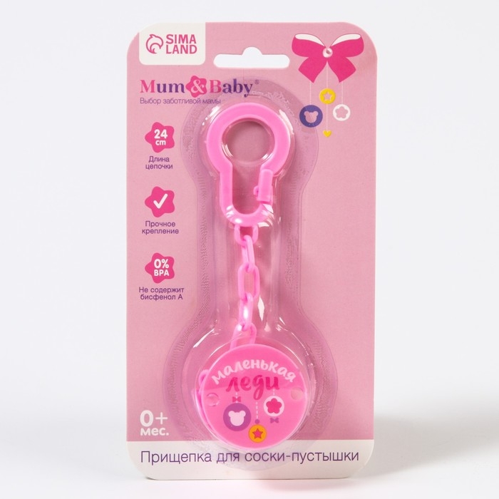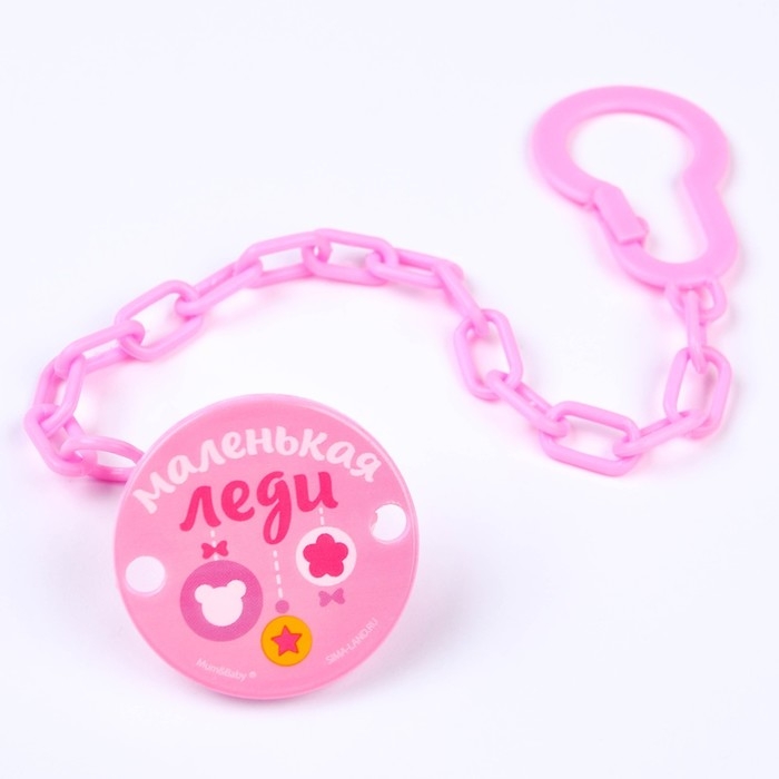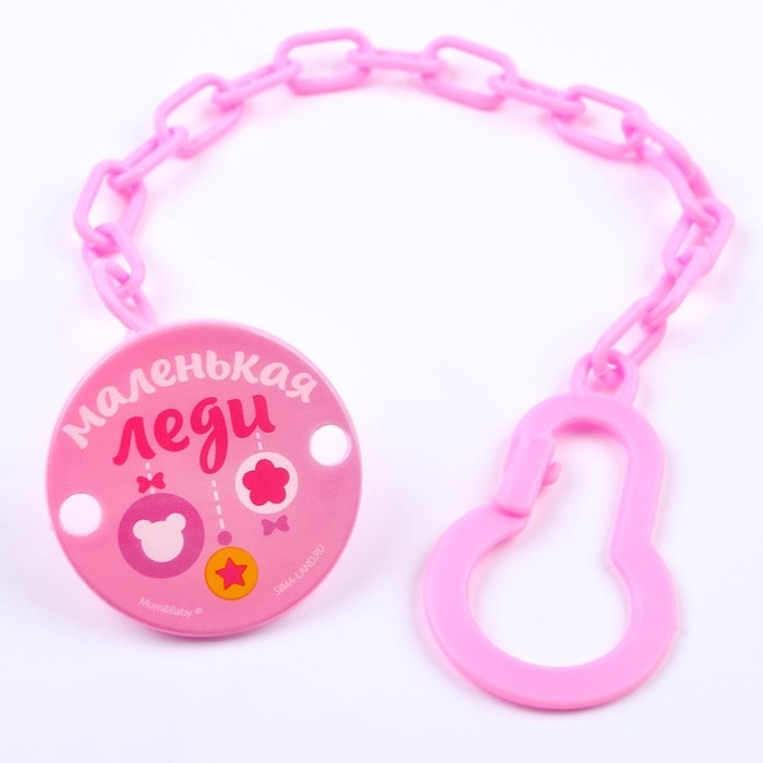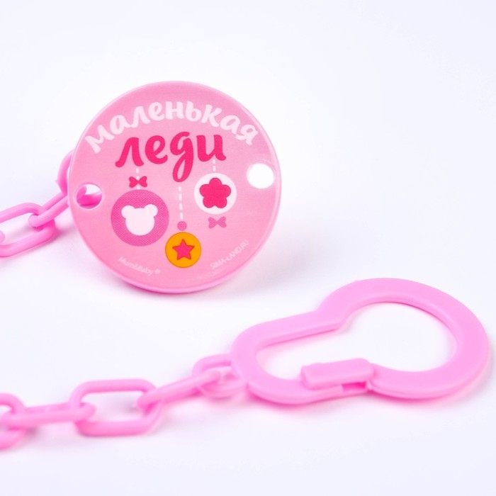 Держатель для соски - пустышки , «Маленькая леди», на цепочке, цвет розовый