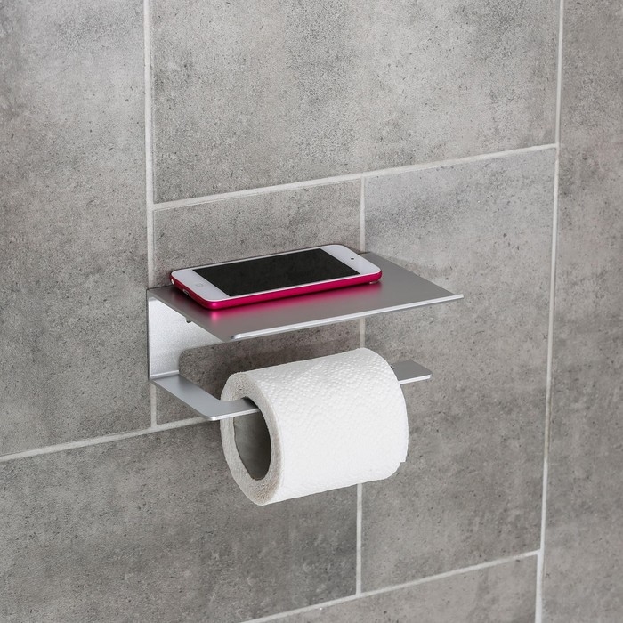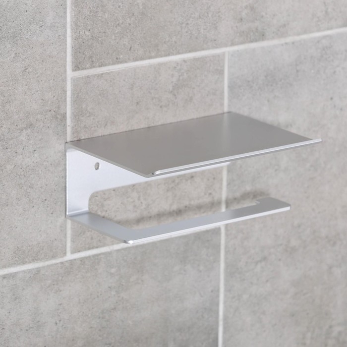 Держатель для туалетной бумаги с полочкой 6,5×16×11,5 см, алюминий