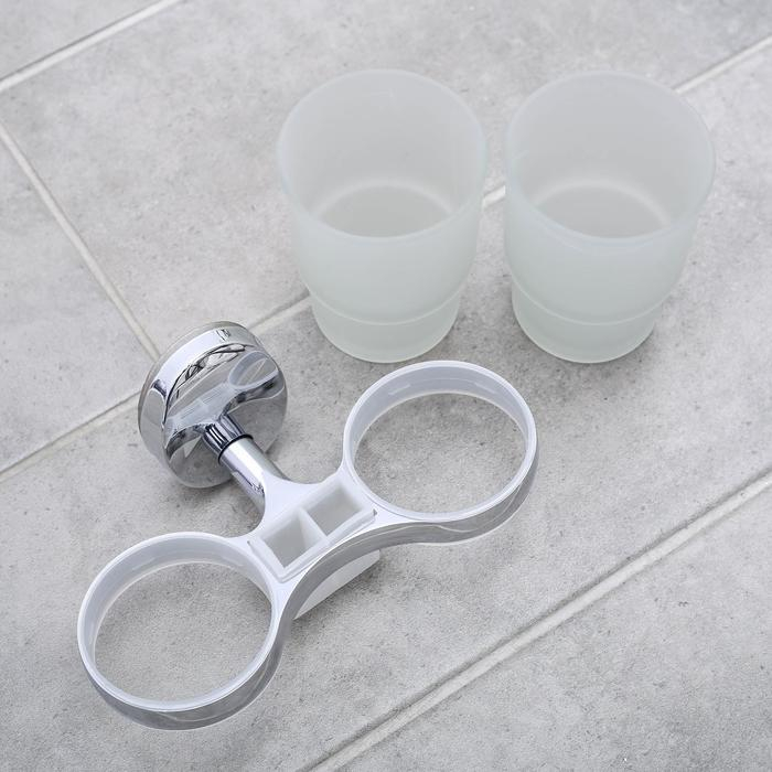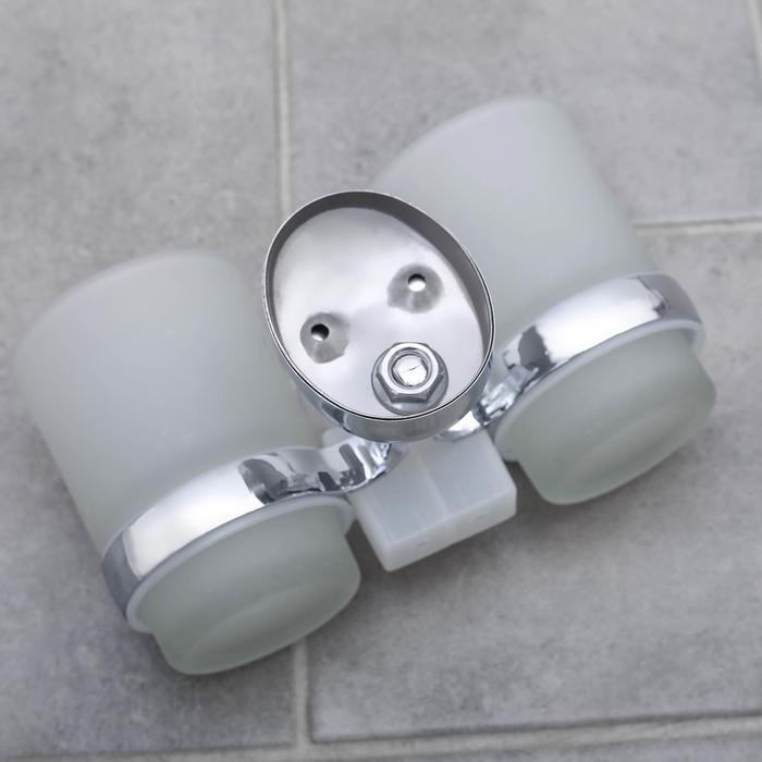 Держатель для зубных щёток настенный, Accoona A11004, 2 стакана, стекло, цвет хром