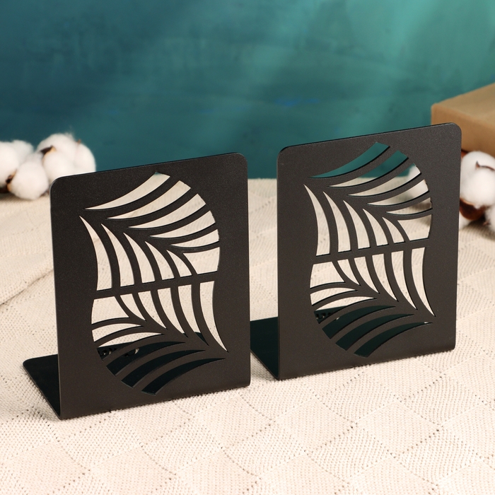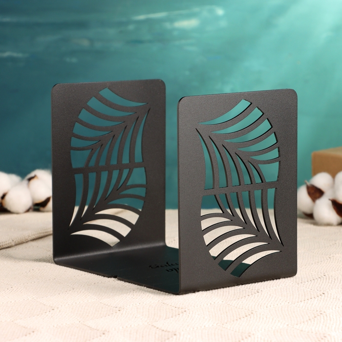 Держатель-подставка для книг "Пальмовый лист" набор 2шт, 9,2х12х15,4см, черный