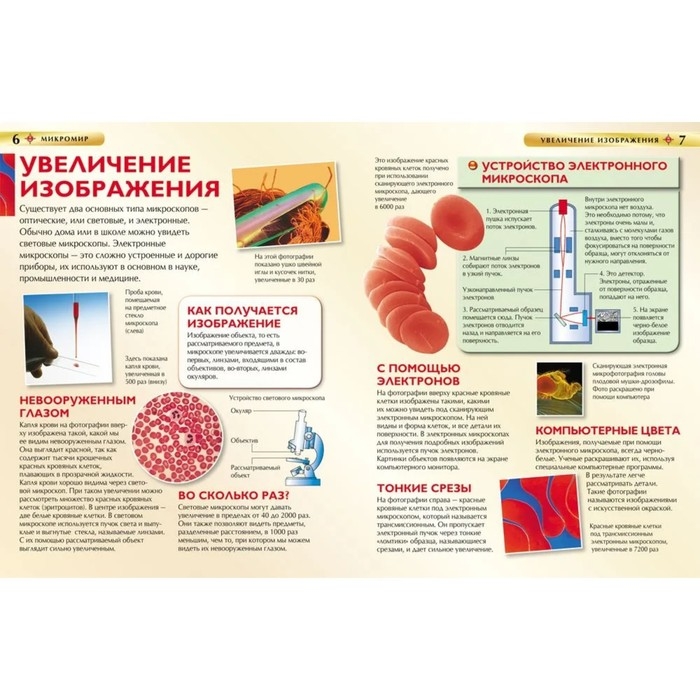 Читателя этой книги ждут удивительные открытия: в ней рассказывается о том, что невозможно увидеть невооруженным глазом, о микромире, где каждый предмет таит в себе неожиданность. Под микроскопом крохотные существа превращаются в страшных монстров, привычные вещи меняют свой облик, и даже о собственной коже, волосах, одежде можно узнать много нового и интересного. Все это вы увидите на подробных фотографиях, сделанных при большом увеличении. Книга рассказывает и о том, как устроен микроскоп, какие бывают микроскопы, для чего их применяют, и как можно приготовить препараты для микроскопии.