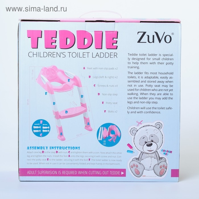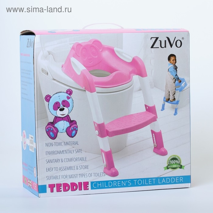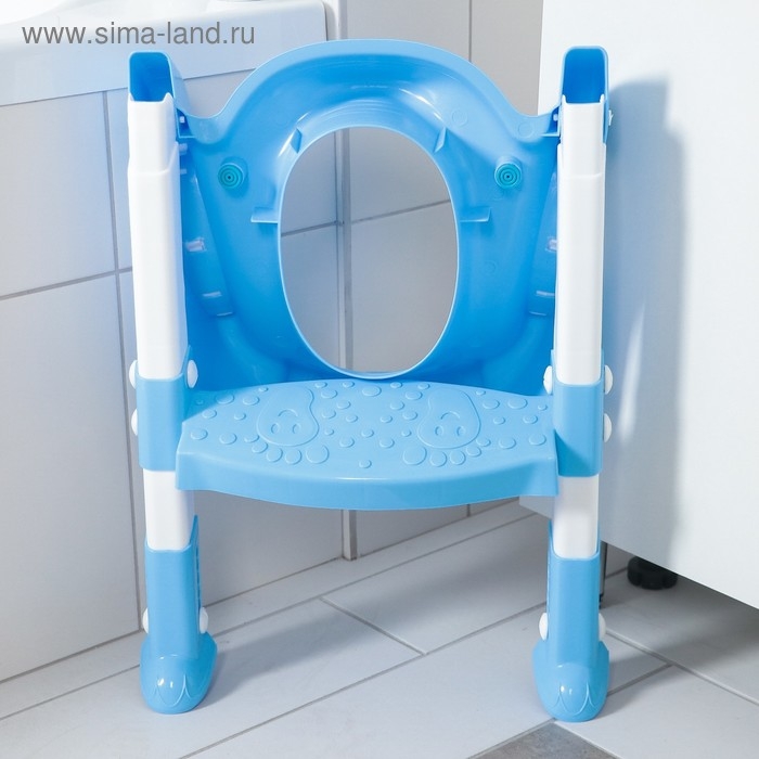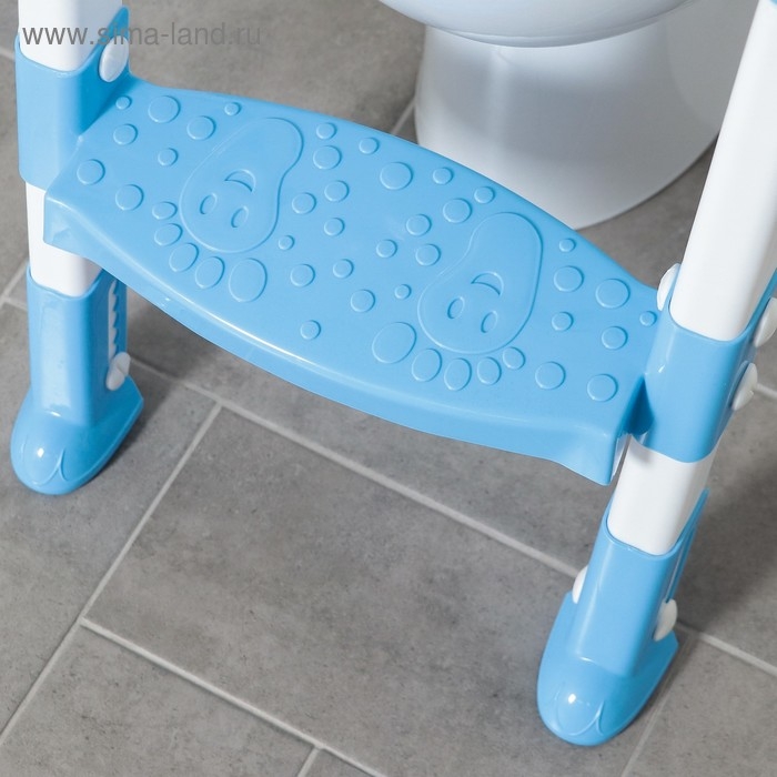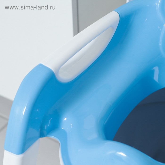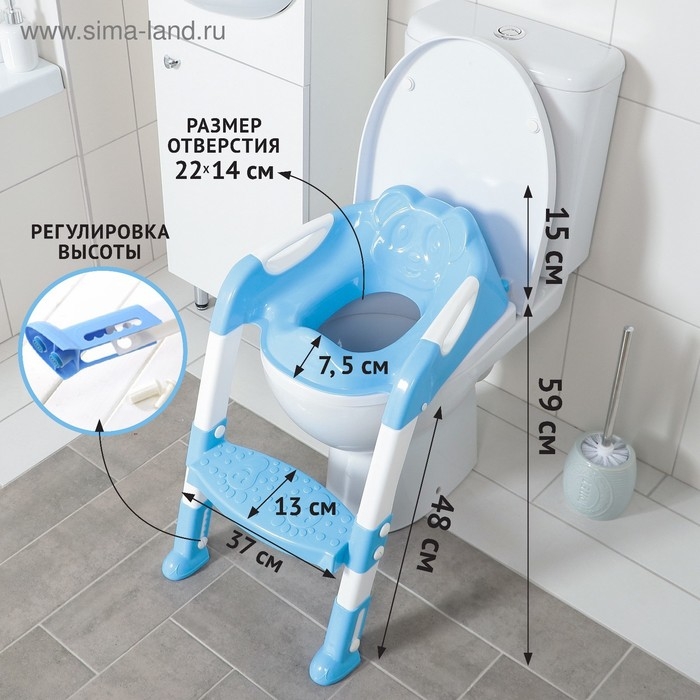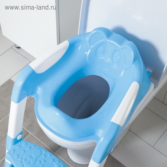 Детская накладка - сиденье на унитаз со ступенькой «Панда», с ручками, цвет голубой