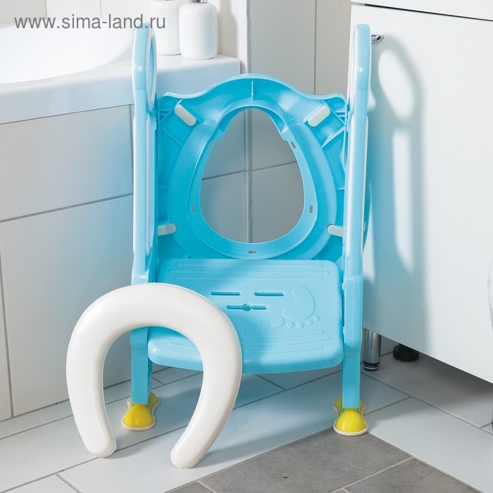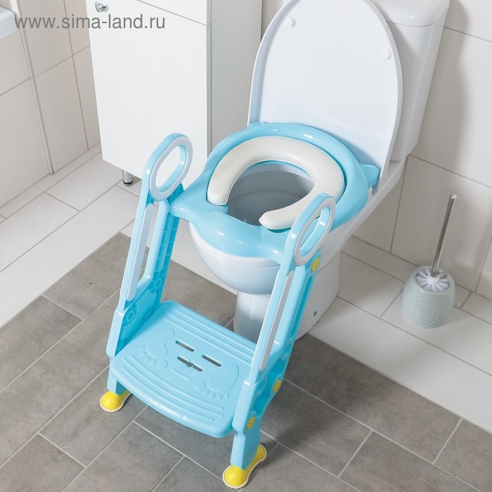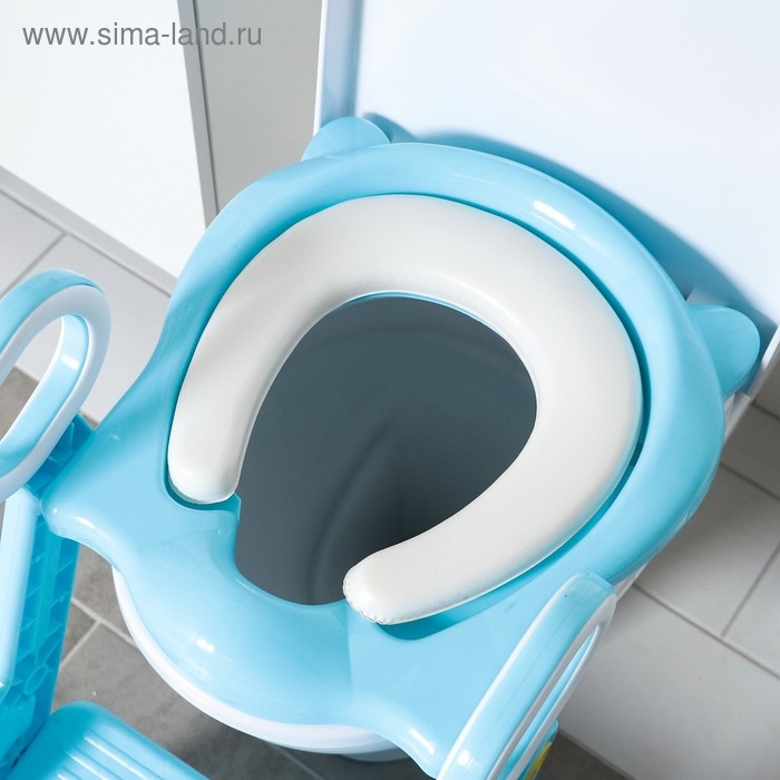 Детская накладка - сиденье на унитаз со ступенькой, с мягким сиденьем, цвет голубой
