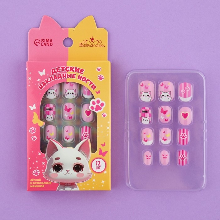 Детские накладные ногти «Сладкий стиль», 12 шт