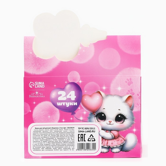 Детский блеск для губ «Кошечка», 8 мл, МИКС