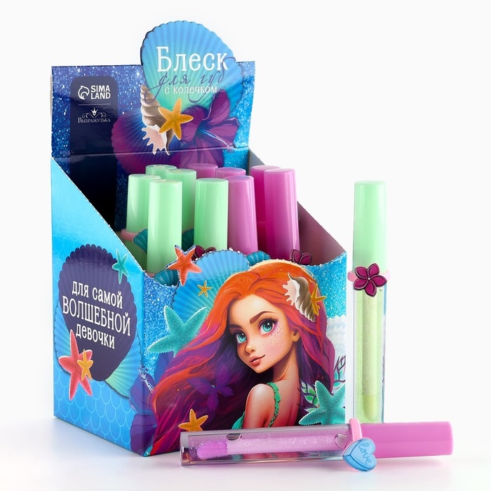 Детский блеск для губ «Морская принцесса» с колечком, 8 мл, МИКС