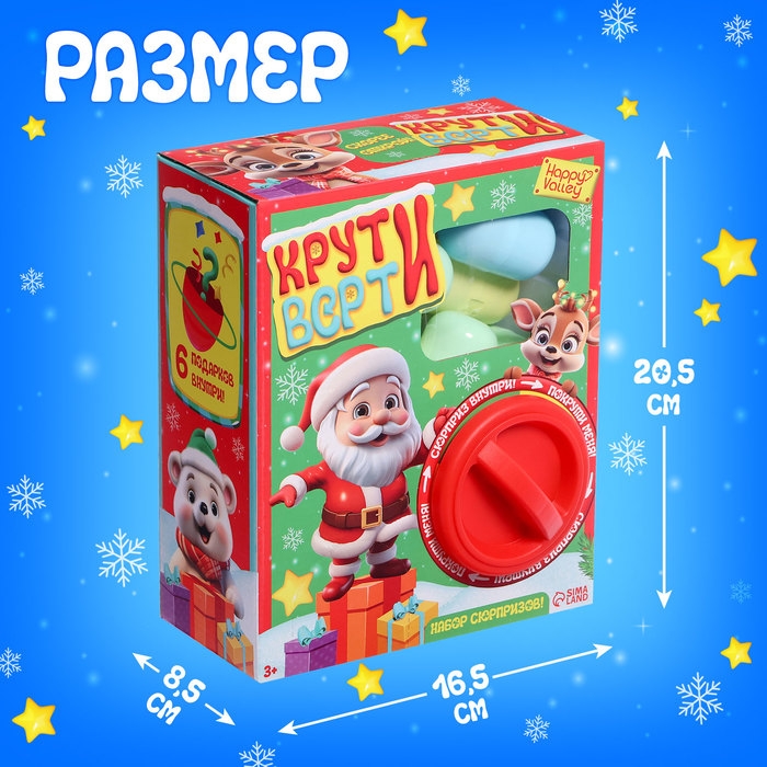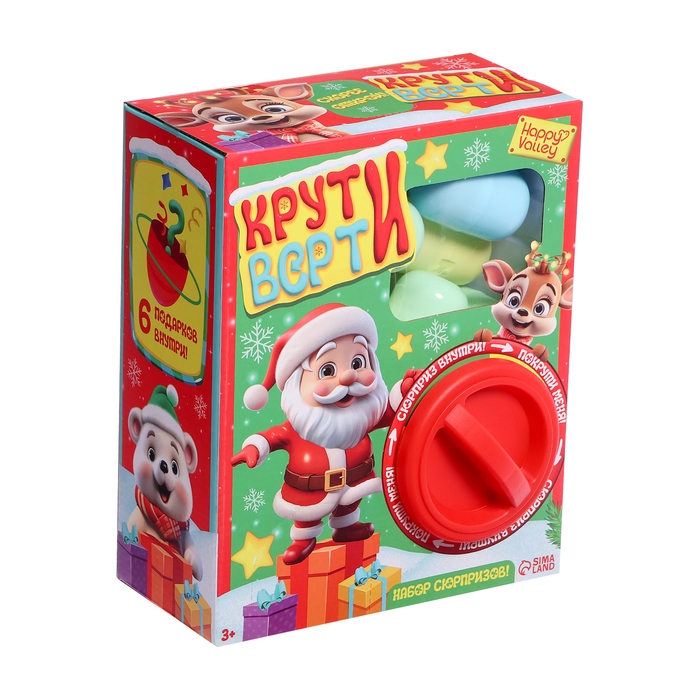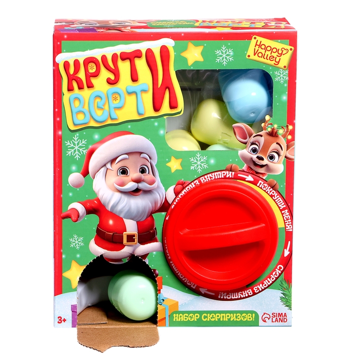 Детский игровой автомат «Крути-верти», новогодний, с набором игрушек-сюрпризов в яйце