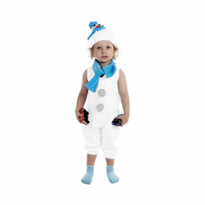 Детский карнавальный костюм "Снеговик с голубым шарфом", велюр, комбинезон, шапка, шарф, рост 68-98 см