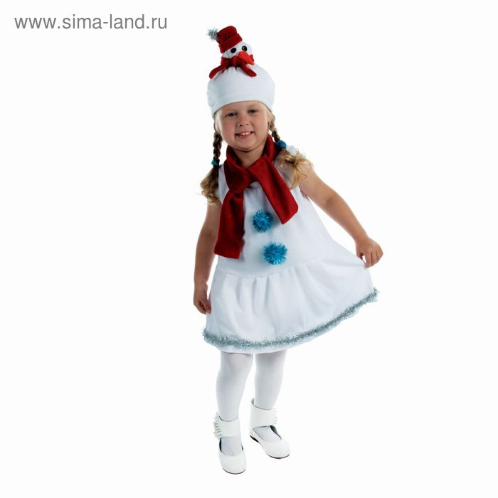 Детский карнавальный костюм "Снеговик с красным шарфом", велюр, рост 68-98 см, цвет белый