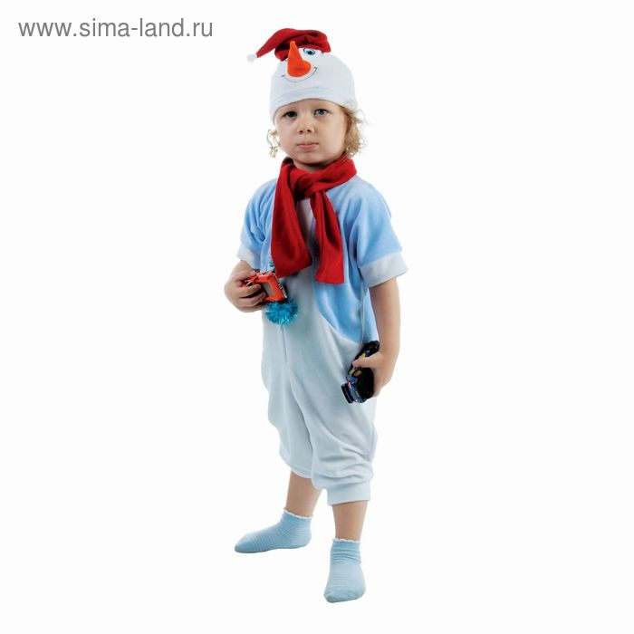 Детский карнавальный костюм «Снеговик в голубом жилете», велюр: комбинезон, шарф, шапка, рост 68–92 см