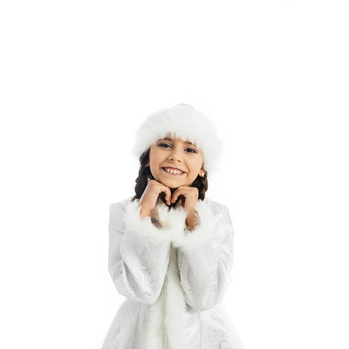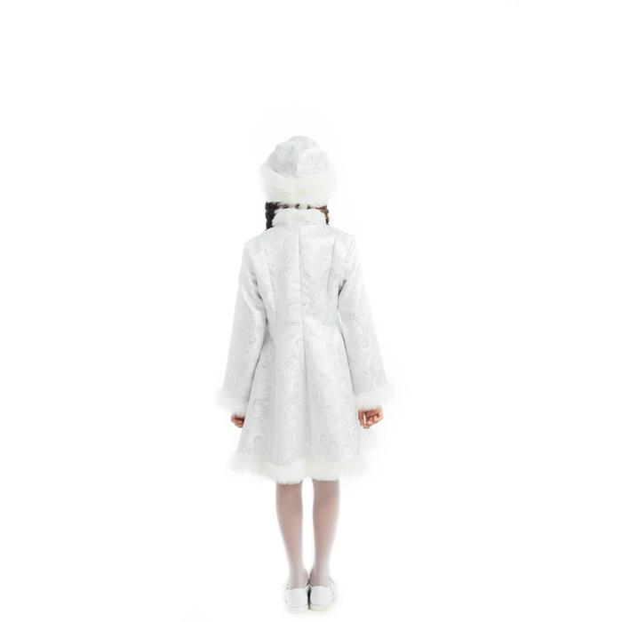 Детский карнавальный костюм «Снегурочка», парча белая, шуба, шапка, р. 34, рост 134 см