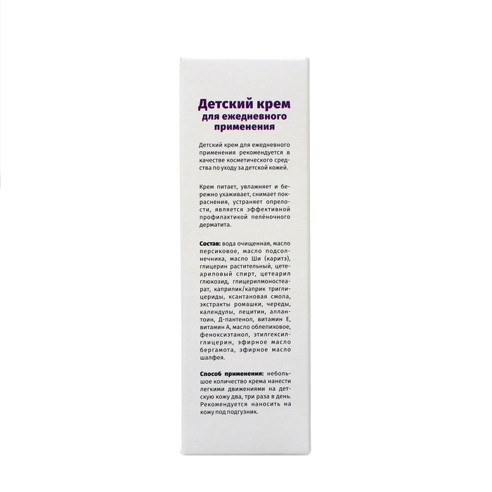 Детский крем для ежедневного применения рекомендуется в качестве косметического средства по уходу за детской кожей. Крем питает, увлажняет и бережно ухаживает, снимает покраснения, устраняет опрелости, является эффективной профилактикой пелёночного дерматита.