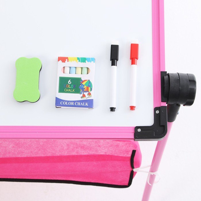 Детский мольберт «Премиум» в наборе с маркерами, мелом, губкой розовый