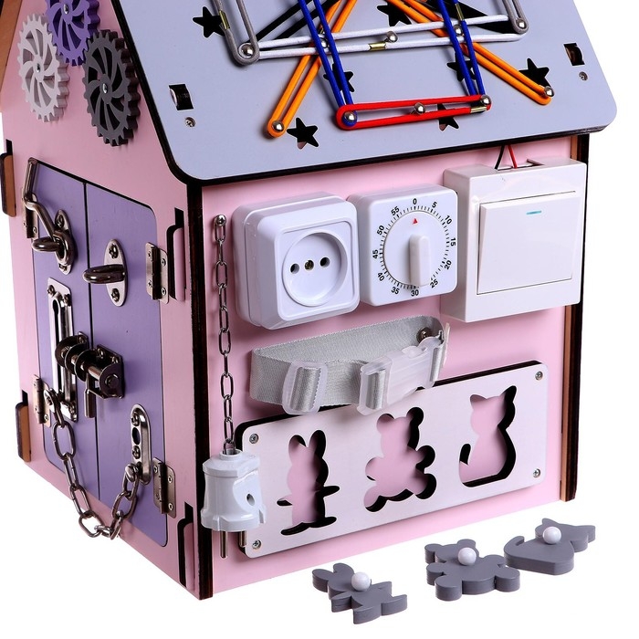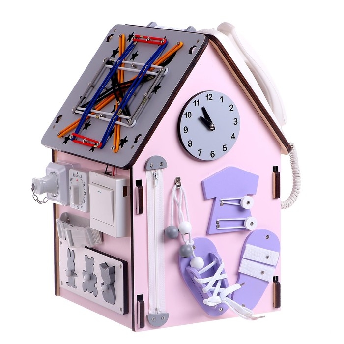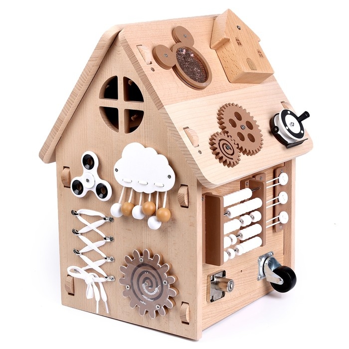 Детский развивающий комплекс — это усовершенствованная версия классических бизибордов. Специальный домик предназначен для всестороннего развития ребёнка. У игрушки есть несколько поверхностей с разными модулями.
