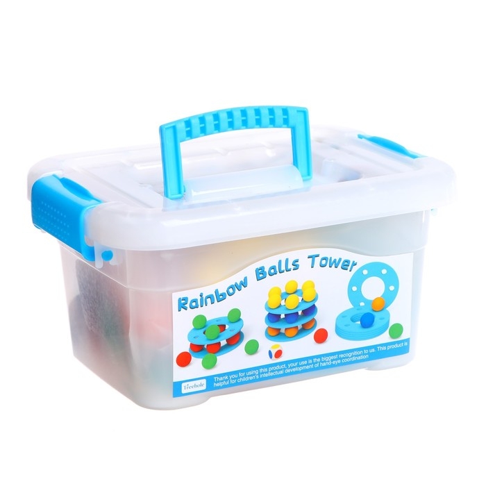 В наборе есть пластиковый контейнер с ручкой, в котором удобно хранить развивающую игру.