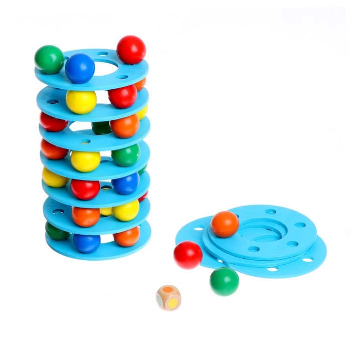 Ребёнку необходимо собрать башню из шариков и дисков. Далее нужно выбрать участника, чей ход будет первым. Каждый игрок в своей очереди рукой убирает по одному шарику. Делать это нужно аккуратно, чтобы башня не упала.