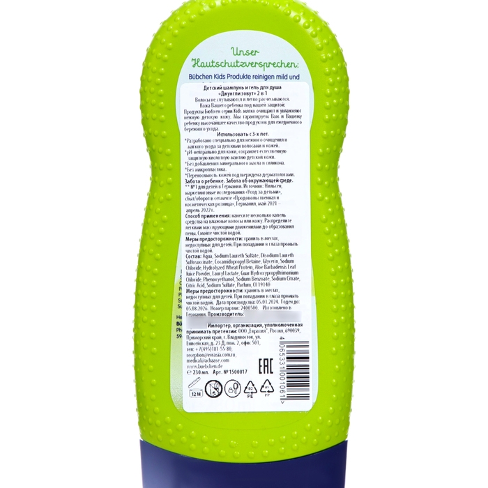 Для нежного очищения волос и кожи. С таинственным запахом тропического леса после дождя. Совмещает в себе шампунь для мытья волос и гель для душа. Мягко удаляет загрязнения, питает волосы и кожу. Укрепляет волосы, облегчает их расчесывание и придает естественный шелковистый блеск. Использовать для детей с 3-х лет.