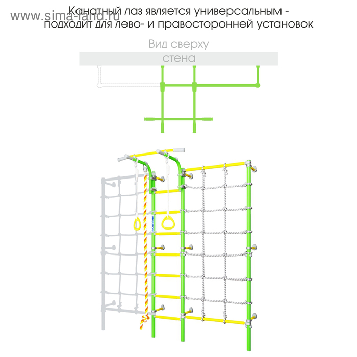 Детский спортивный комплекс ROMANA S3 состоит из шведской стенки и веревочного лаза, которые фиксируются у стены на оригинальные подвижные крепежи. Благодаря этому комплекс можно закрепить у любой свободной стены, не боясь попасть в полость или проводку.