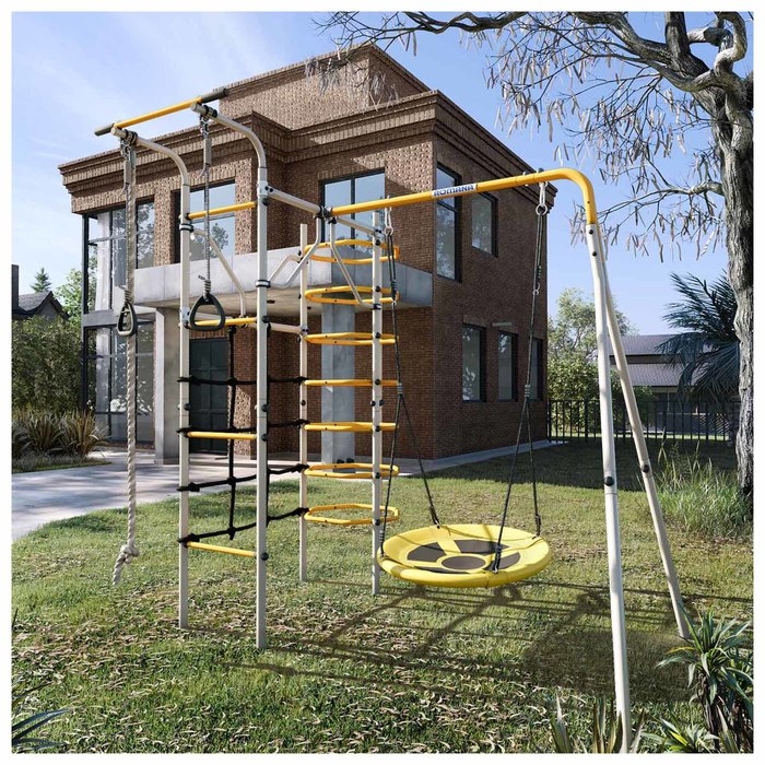 Спортивный комплекс подходит для установки на улице, например, на дачном участке. Разработан специально для детей от 3 лет. Развивает координацию, ловкость и силу, а также позволяет весело проводить время на свежем воздухе.