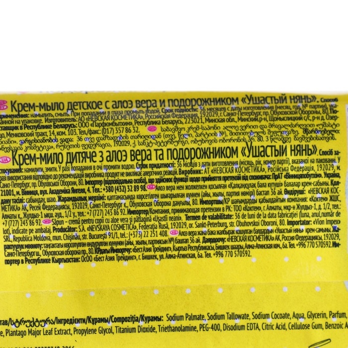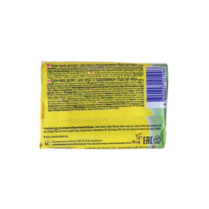 Детское крем-мыло Ушастый нянь, с алоэ вера и подорожником, 90 г