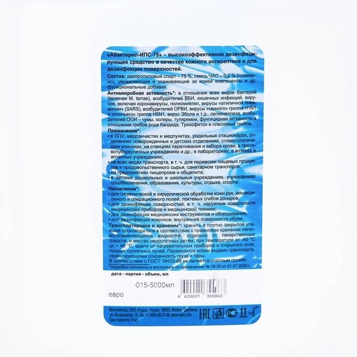 Дезинфицирующее средство Абактерил ИПС-75, 5 л