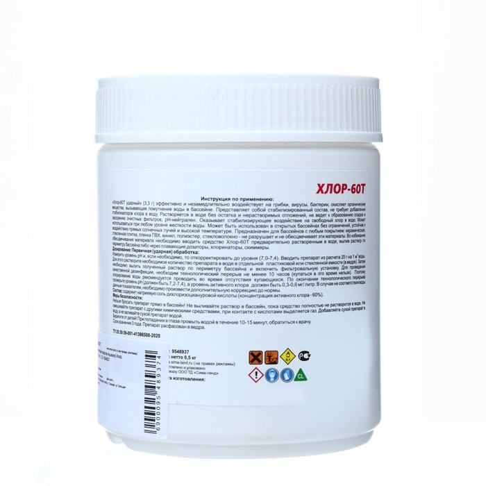 Не содержит извести, нейтрален к воздействию на уровень рН, оказывает стабилизирующее действие на активный хлор в воде. Не предназначен для ударной (начальной) обработки.