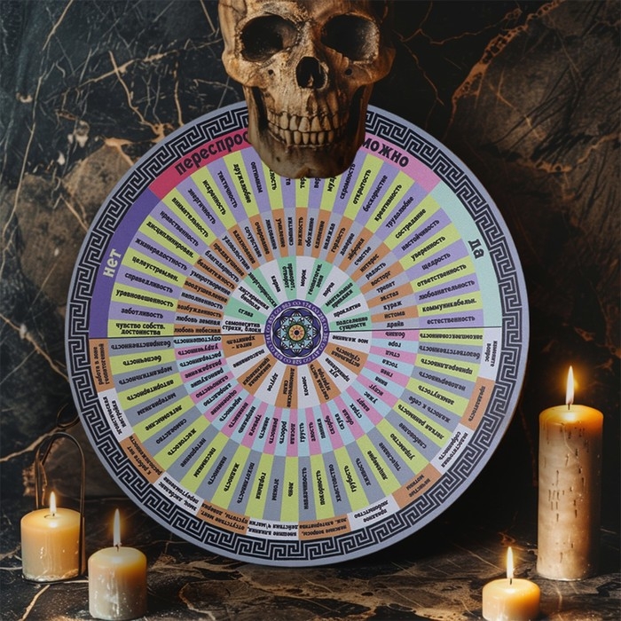 Эта диагностическая доска кроме однозначных ответов на различные вопросы специально предназначена для саморазвития, поиска духовного пути, улучшения своего характера, изменений в разных сферах жизни и судьбы в целом. В ее центре расположен символ, помогающий сонастройке человека и инструмента, а также защищающий от воздействия негативных и нежелательных энергий. В аннотации к доске представлены основные возможные направления взаимодействия с доской «ключи счастья», в дальнейшем вы сможете самостоятельно и творчески работать с ее различными секторами, исходя из возникающих запросов и придерживаясь общих рекомендаций.